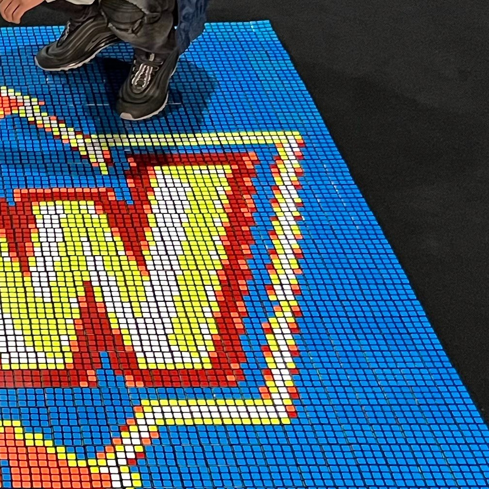 Each Cube Performance is a high-energy, interactive experience. You’ll collaborate with Dylan to create a custom mosaic made entirely out of cubes, featuring anything from a team logo to a portrait of an athlete. On event day, guests can solve a cube, learn on the spot, or have Dylan solve it before placing it into the larger mosaic. From that moment on, they can proudly call themselves an official artist. And if you want the masterpiece to live on, you can even keep it as a permanent display.