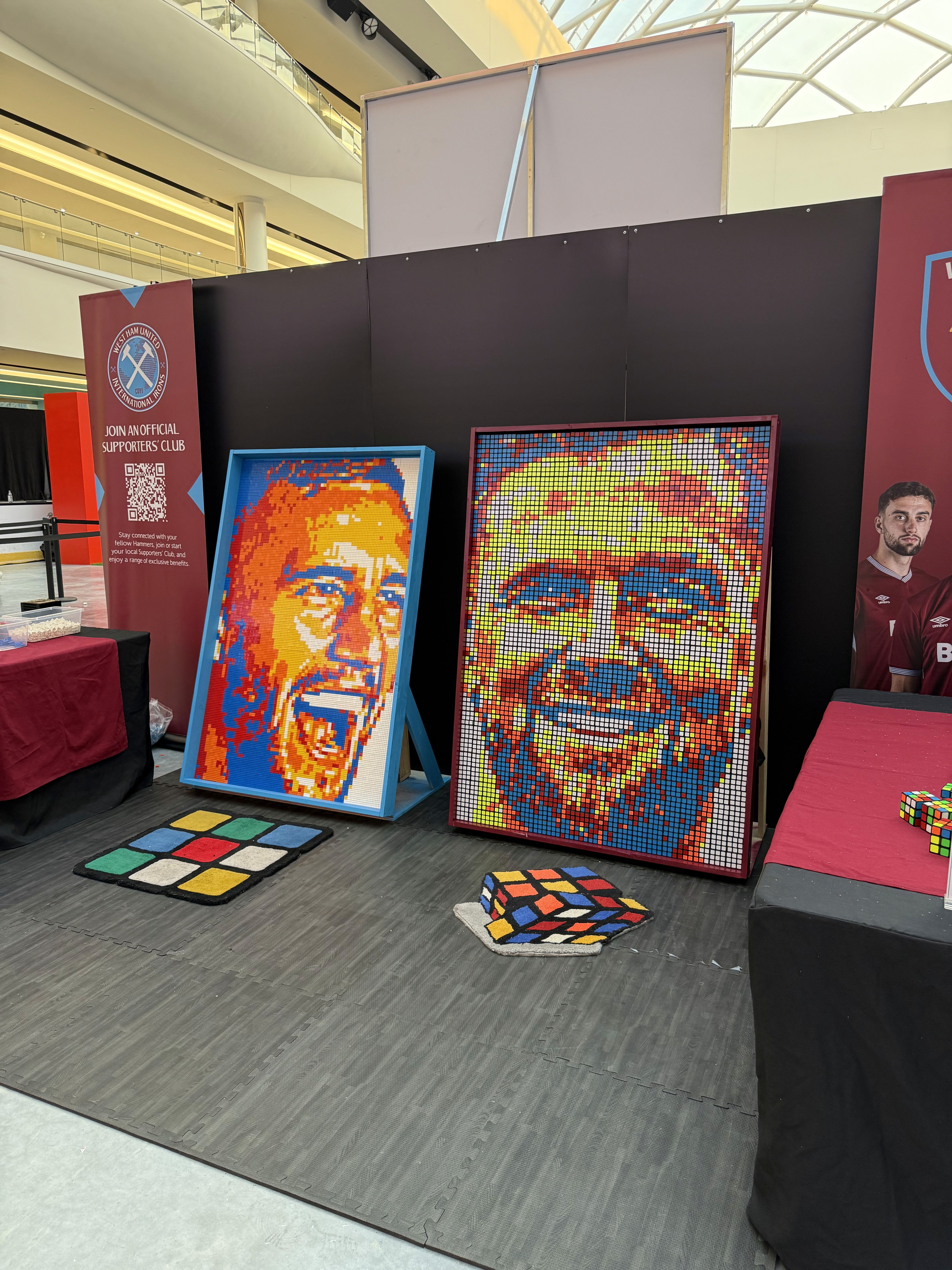 A bold brick mosaic of Tomáš Souček and a vibrant cube mosaic of Niclas Füllkrug, both built live alongside hundreds of West Ham United fans during the Summer Series and later presented to the players in unforgettable moments.