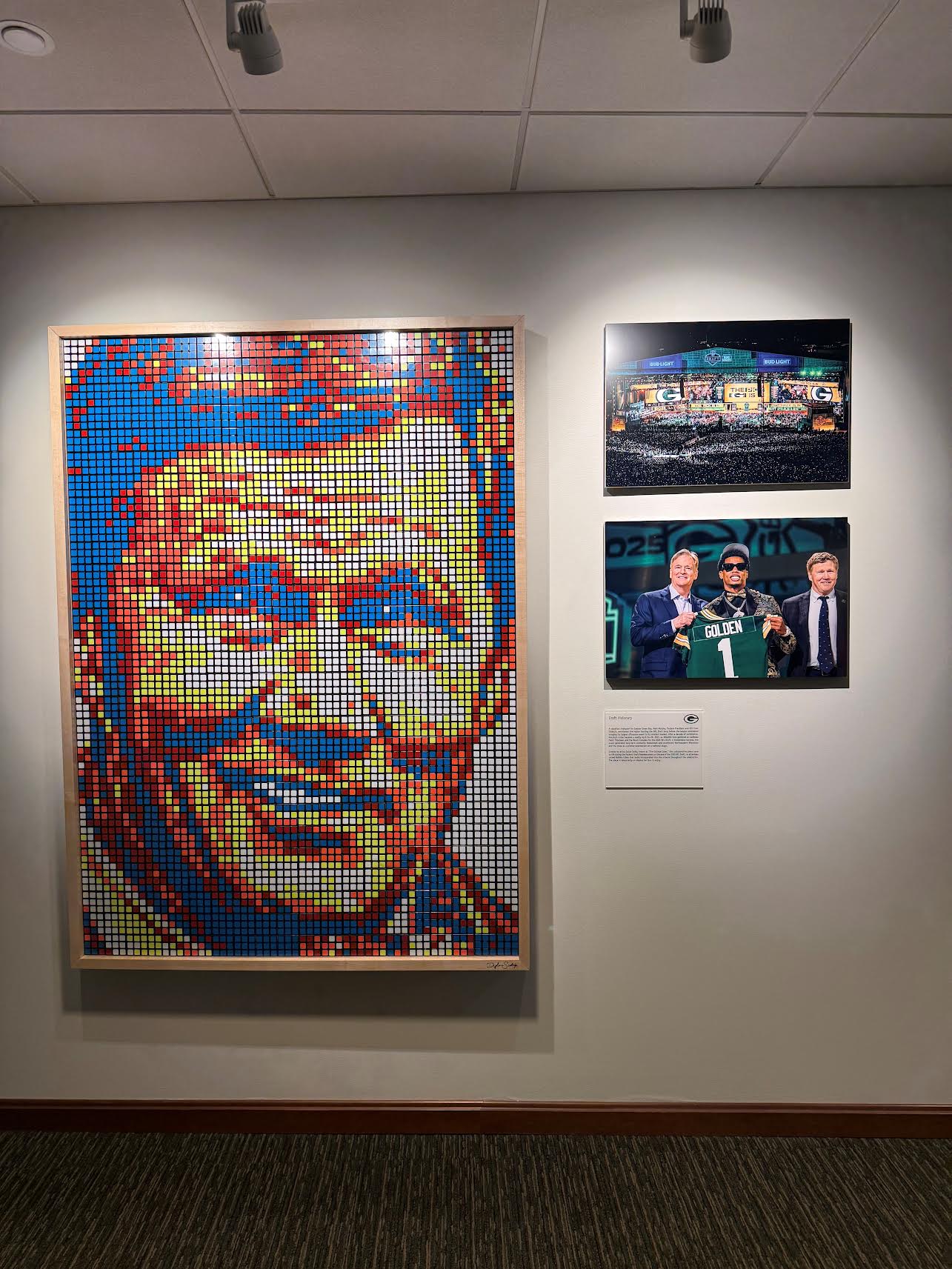 The Green Bay Packers invited Dylan to a private NFL Draft Party and retirement celebration honoring Mark Murphy for his career and leadership as President and CEO of the organization. A custom cube mosaic was created to celebrate his impact and legacy with the Packers, marking a meaningful moment in the franchise’s history.