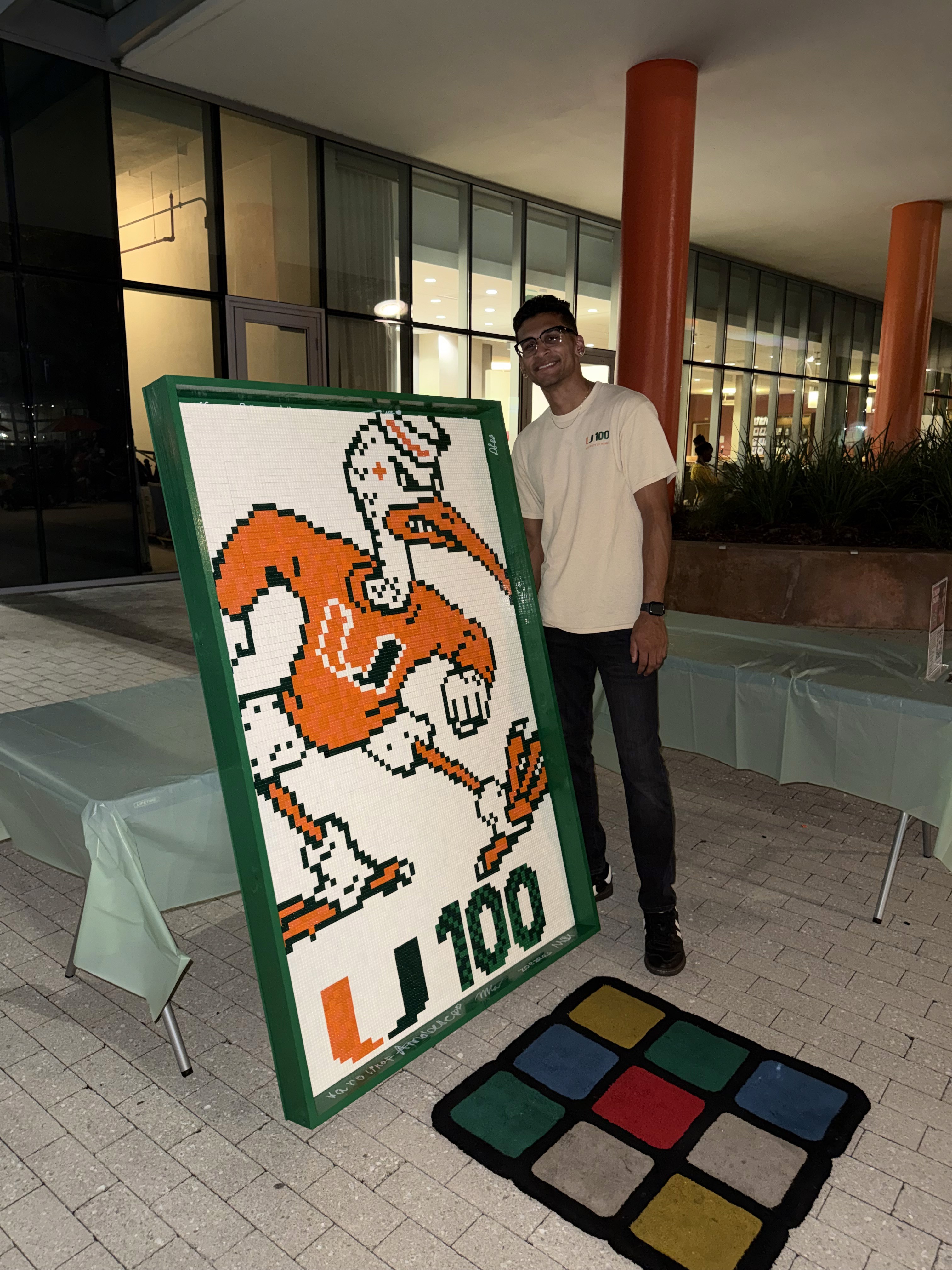 Miami University celebrated its centennial with a live brick mosaic of their iconic mascot, Sebastian. The artwork was built on campus with hundreds of students and alumni contributing to the final piece.