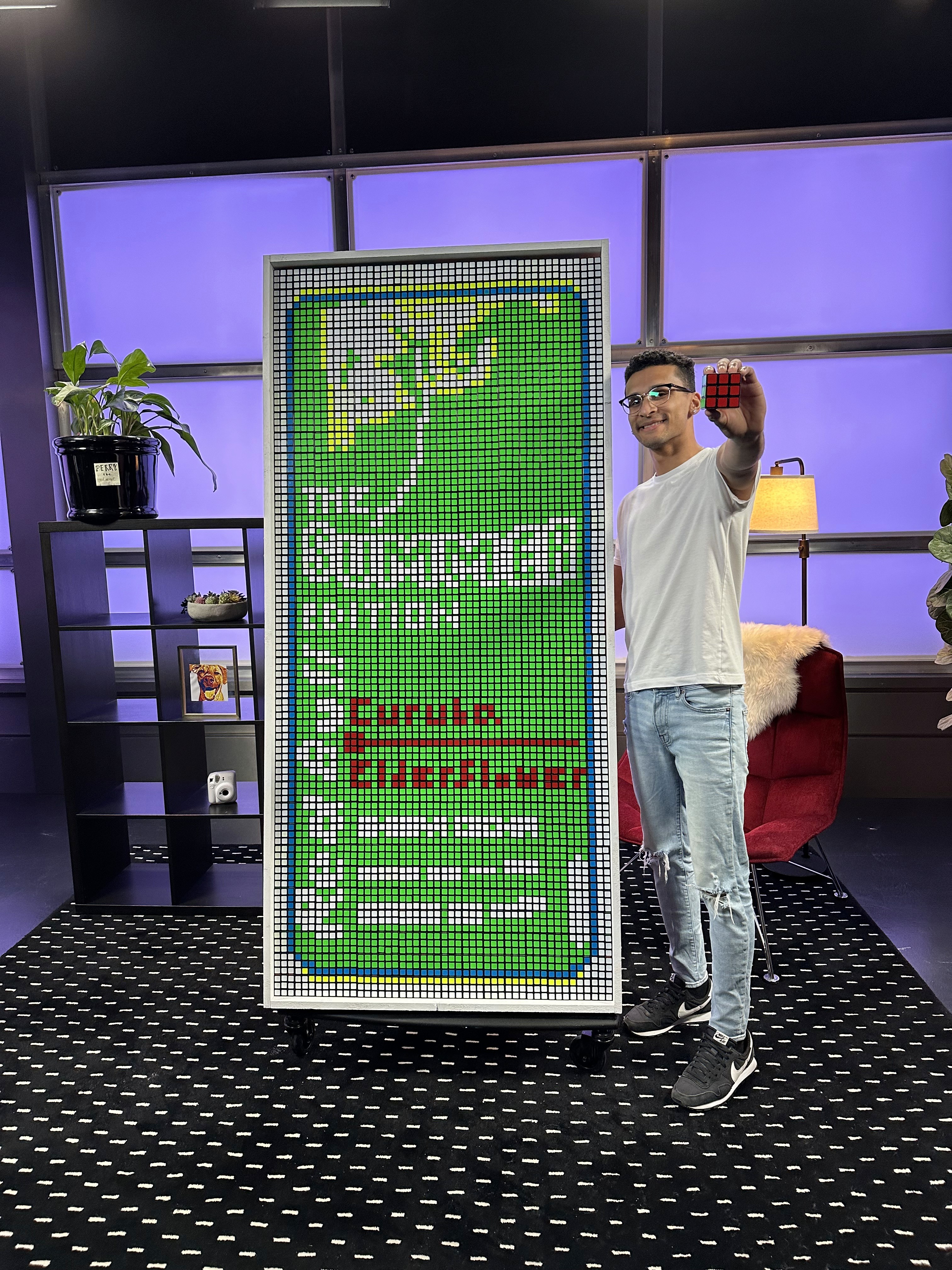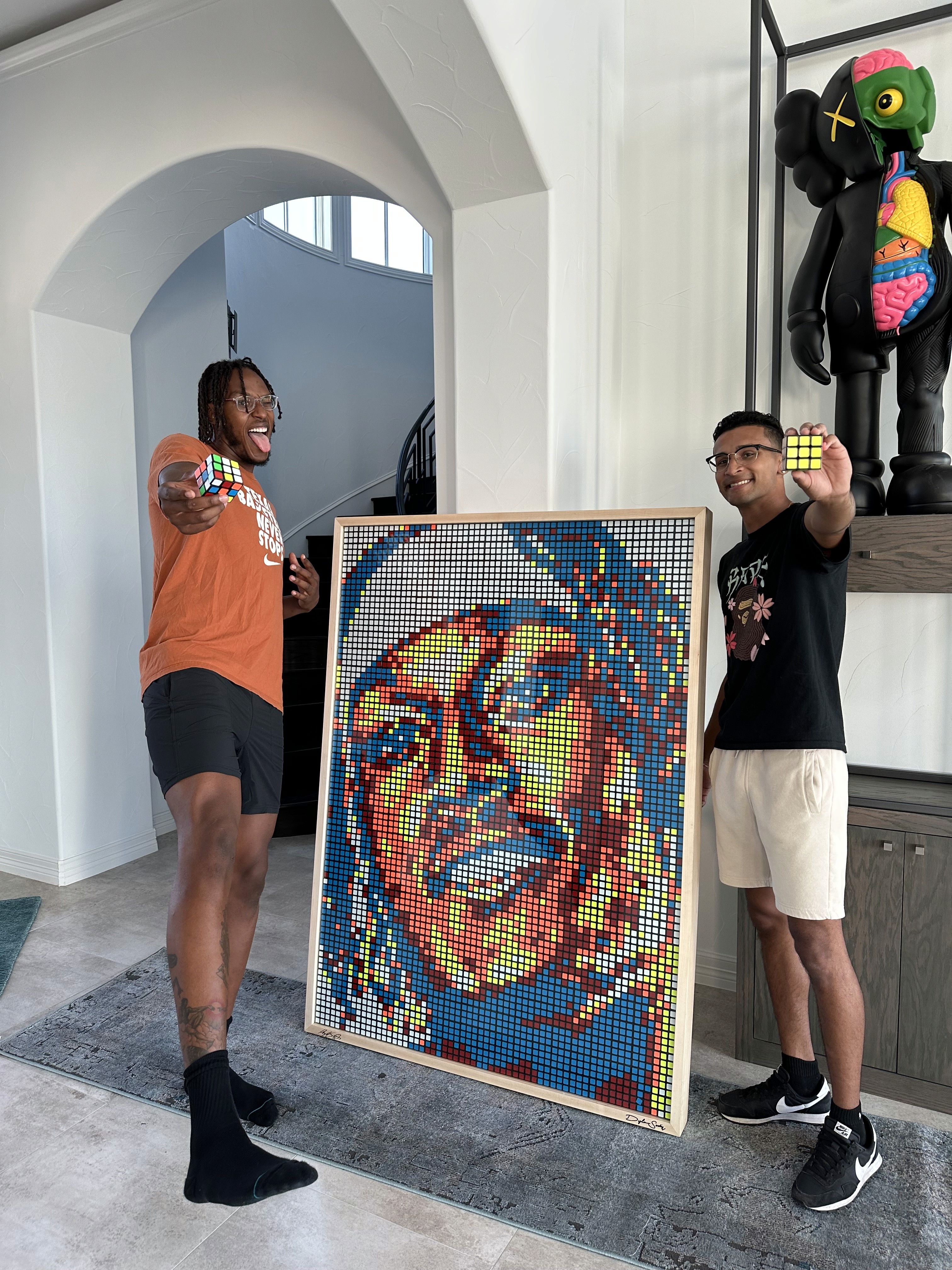 The Boston Red Sox invited Dylan to Fenway Park to create a live cube mosaic of Rafael Devers during a home game. The artwork was displayed inside the ballpark and later gifted to Devers as a thank you following his time with the organization.