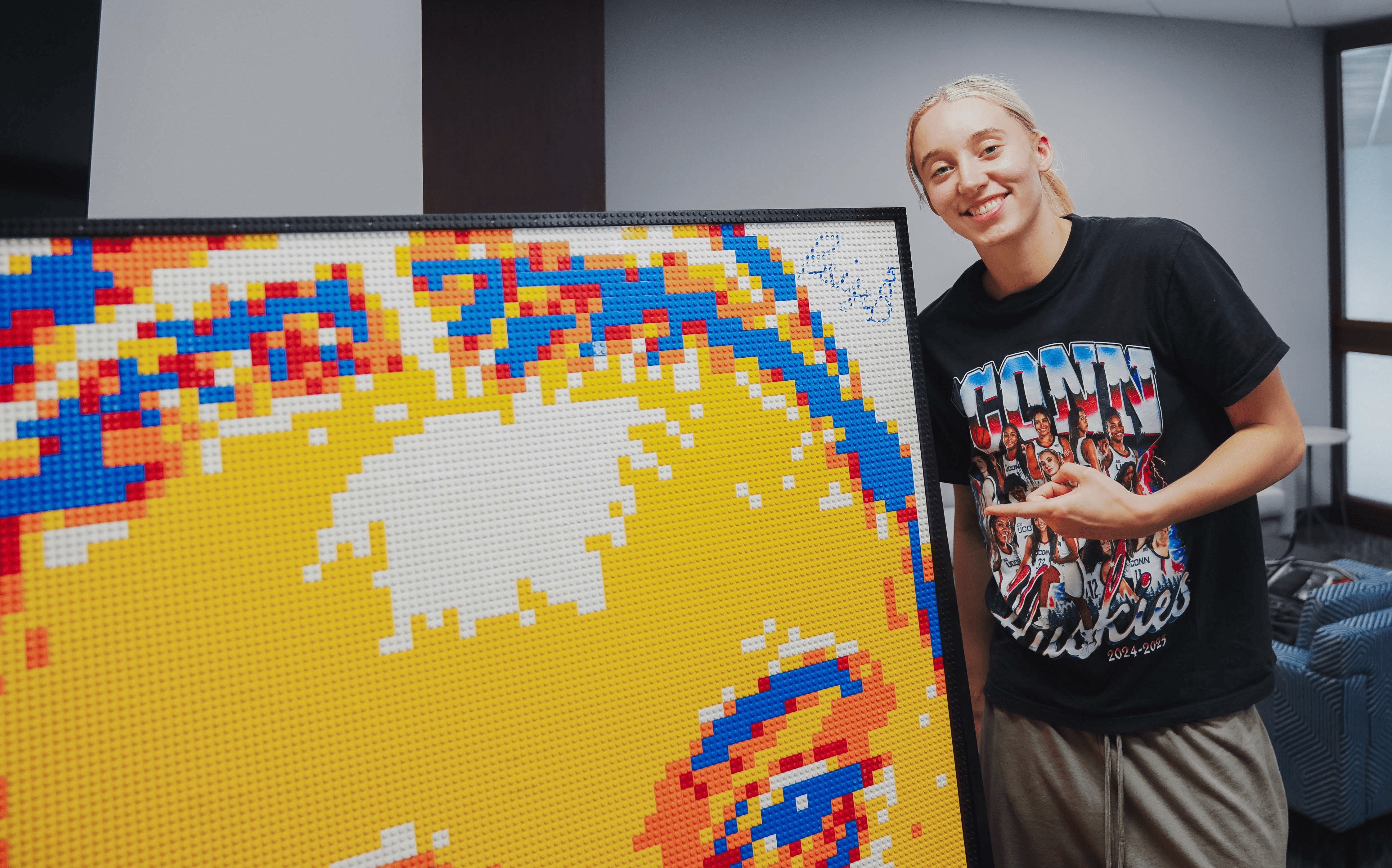The Dallas Wings invited Dylan to their WNBA Draft Party ahead of their number one overall pick, Paige Bueckers. After the live brick mosaic was completed, Paige signed the artwork and the team auctioned it off, giving fans and collectors around the world the opportunity to own a piece of WNBA history.
