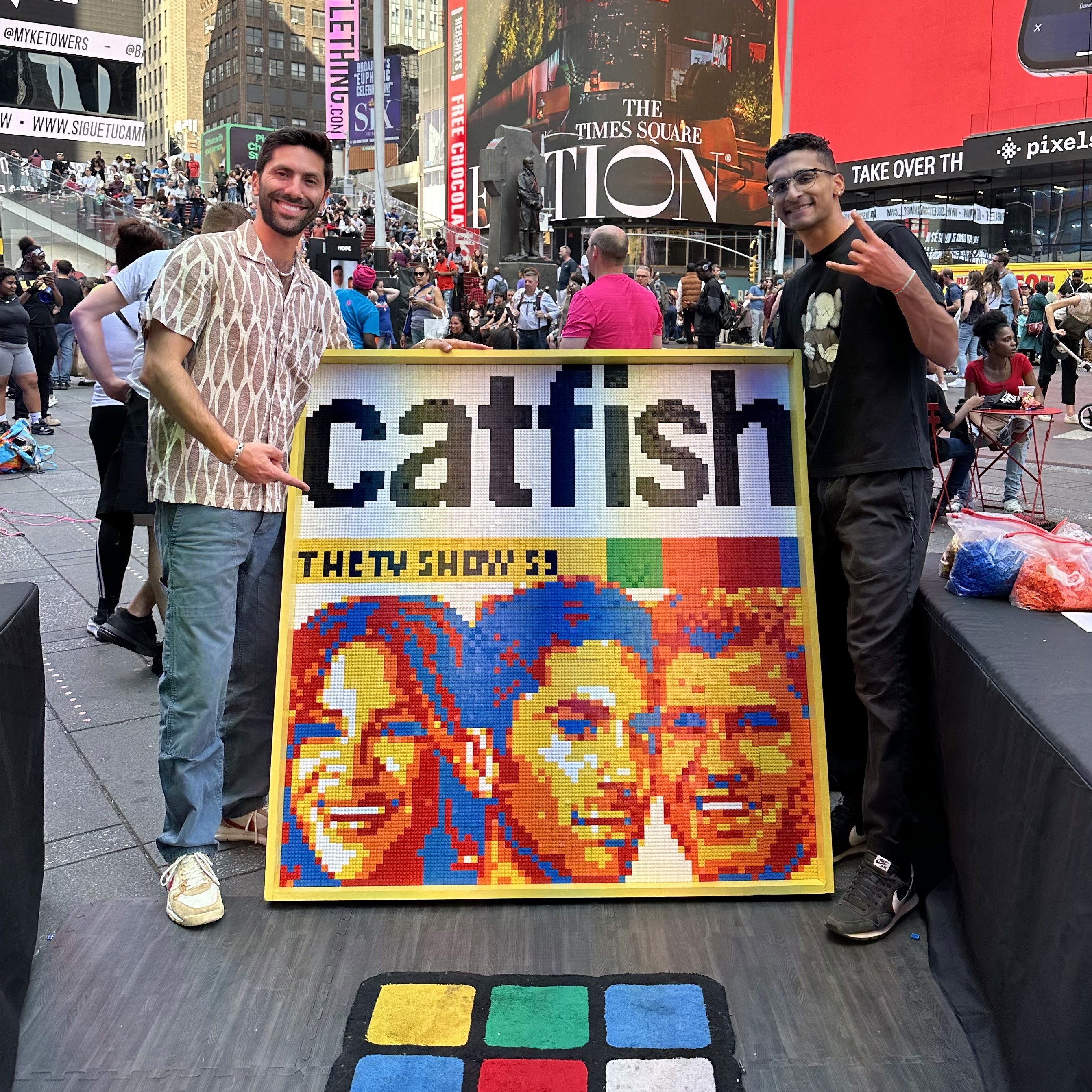Nēv Schulman challenged Dylan to create a custom brick mosaic to promote the final season of MTV’s Catfish. The artwork was built live with hundreds of fans in the middle of Times Square, turning the show’s send-off into a fully interactive experience.