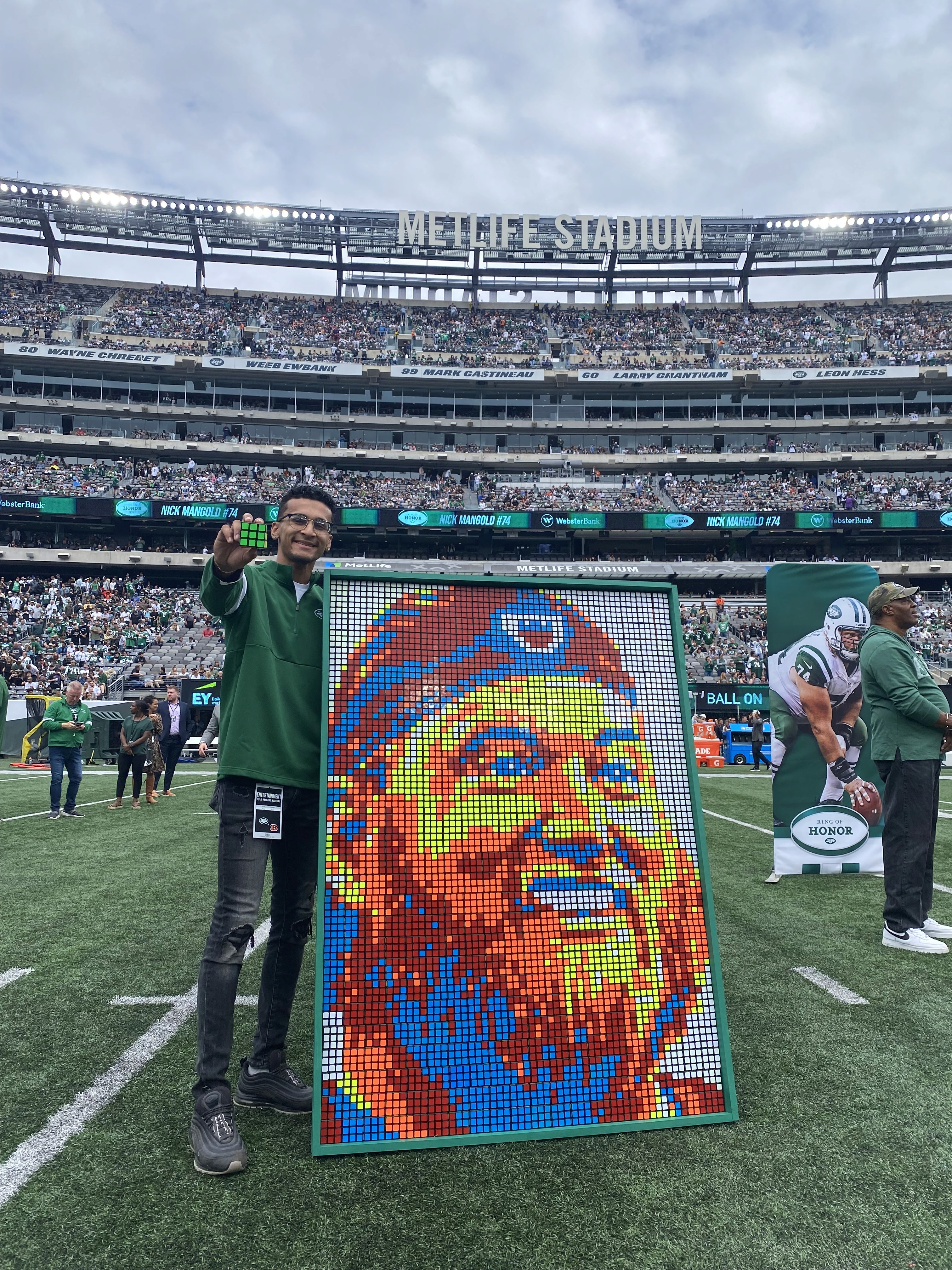 Meet Dylan Sadiq, a full-time cube artist who builds massive mosaic artworks using hundreds or even thousands of cubes. With a background in biomedical engineering from Rutgers University, Dylan began creating these pieces as a hands-on at-home project during the COVID college years. What started as a tribute to his favorite athletes quickly evolved into a global movement. Today, he unites fans, stuns live audiences, and helps the world’s biggest brands tell their stories through unforgettable art. If you are interested in working together, book a call by clicking the button below.